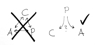 Now consider what options you have when there is write request. You could wait for the partition to end in order to make sure that your system stays in a consistent state (thereby sacrificing __A__vailability), or you could do the update partially (thereby sacrificing __C__onsistency). So you can have only C or A in case of P but not both.